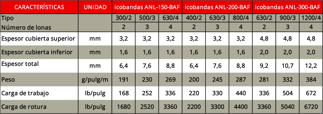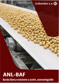 La banda transportadora icobandas ANL-BAF es una banda blanca, resistente al aceite, retardante a la llama y antiestática, fabricada con compuestos de caucho nitrilo. Ofrece excelente resistencia química a grasas, aceites, solventes y agentes relacionados, lo que la convierte en una solución altamente confiable en aplicaciones exigentes. Está diseñada específicamente para la industria de procesamiento y empaque de alimentos, siendo no tóxica, inodora, insípida y no manchante, garantizando una operación higiénica y el cumplimiento de estrictos requisitos de inocuidad alimentaria.
