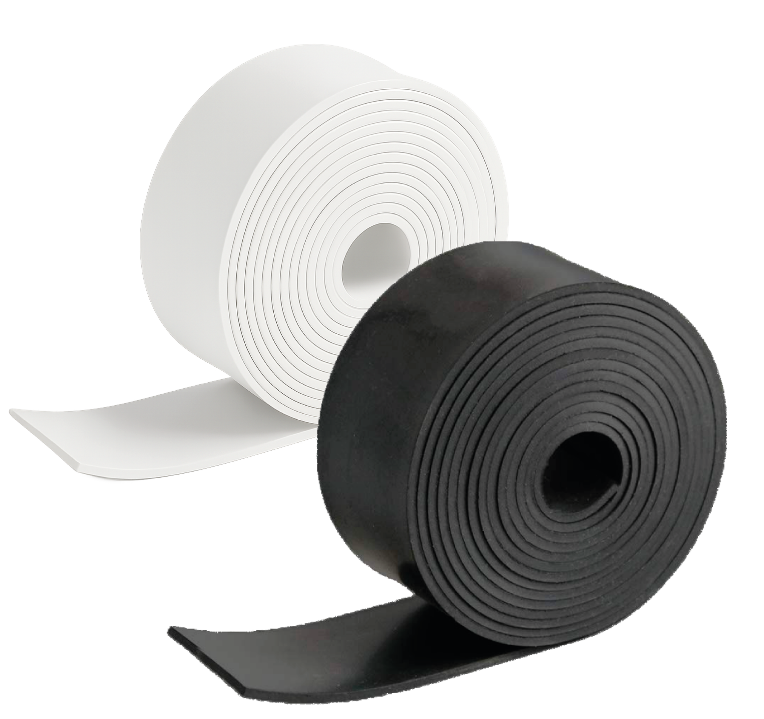La duración de la banda depende del bajo coeficiente de fricción que tenga el guardabandas. Para cumplir esta función, se desarrolló el icobandas CMU-BA Guardabandas de color blanco No-manchante, fabricado con caucho nitrilo que le da una excelente resistencia a grasas, aceites y solventes; es completamente atóxico, no transmite sabores ni olores, resiste temperaturas continuas de hasta 212 °F y se fabrica en varios espesores y tamaños; especialmente para uso en el procesamiento y envasado en la industria alimentaria.